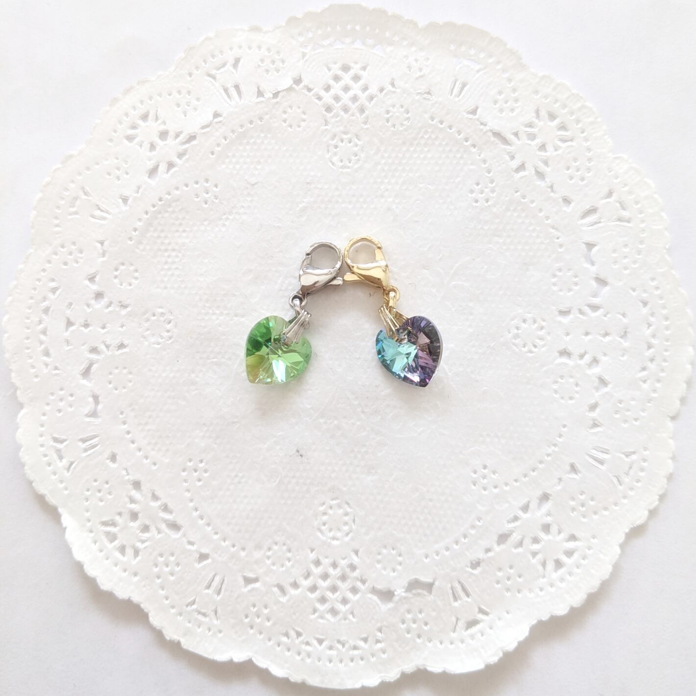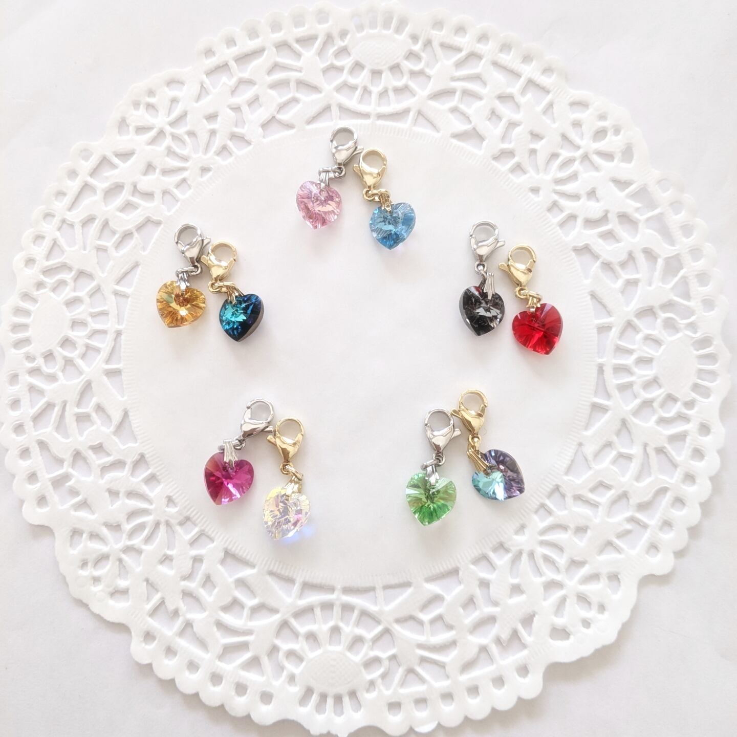 ハート型のスワロフスキーが煌めく